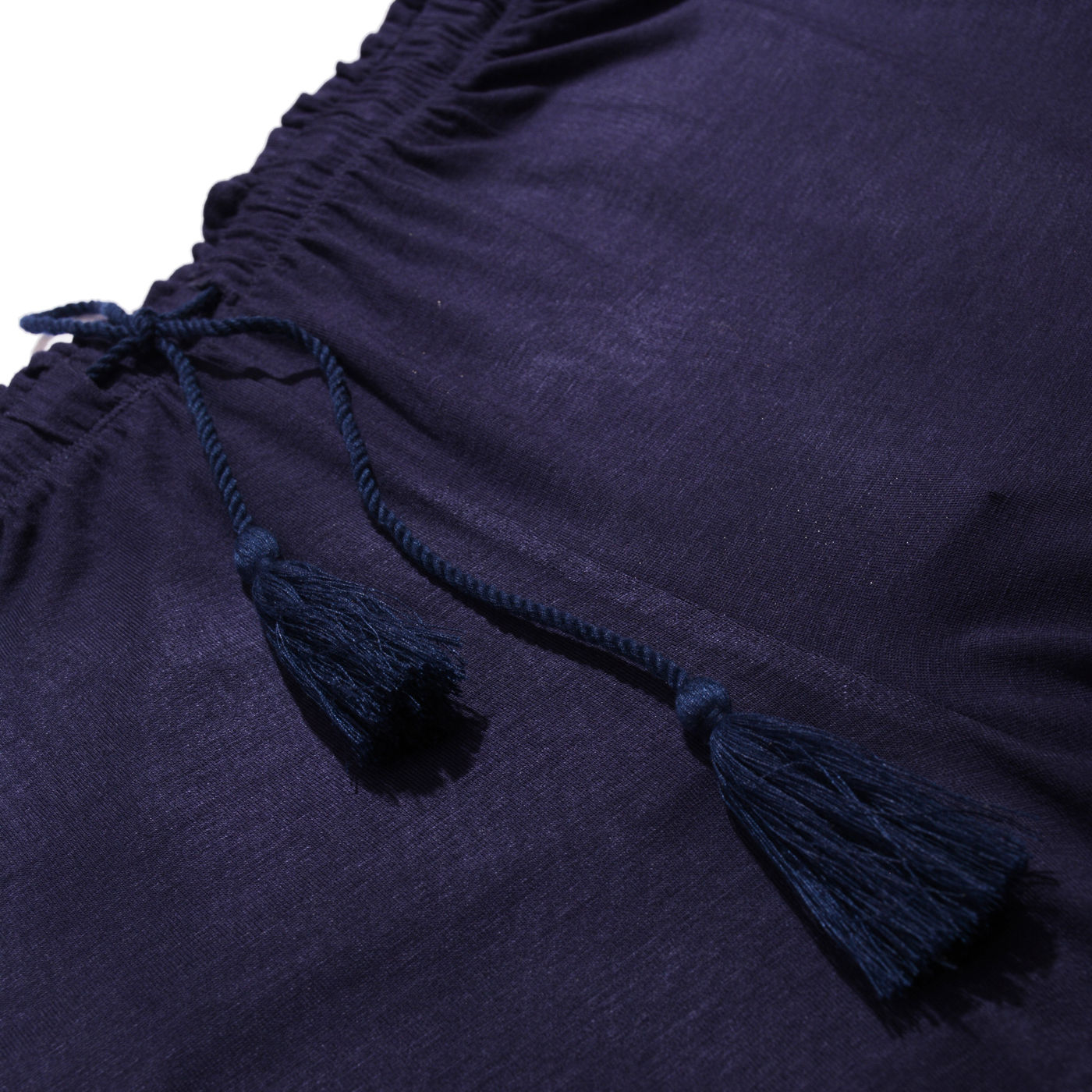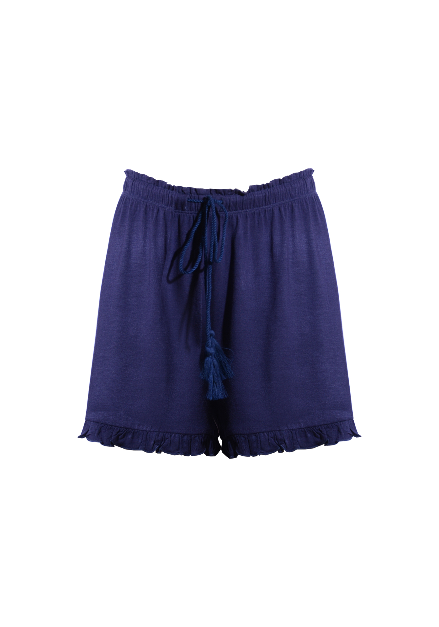 Lettuce Trim Drawstring Waist Sleep, Ruffle Hem Shorts