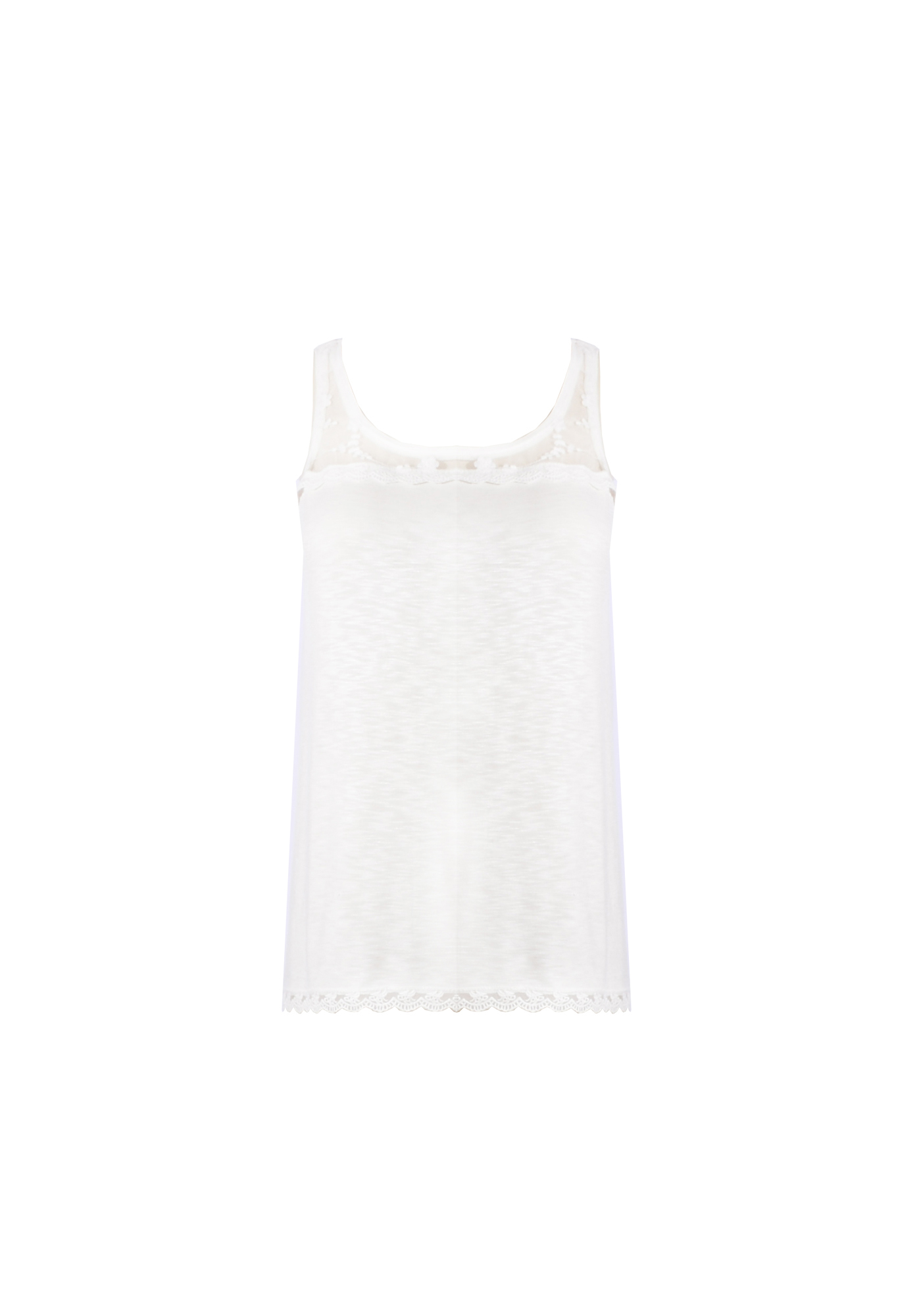 Versatile vest top with elegance lace, Finished in a lovely flowing fabric, in a comfortable sleeveless design.
